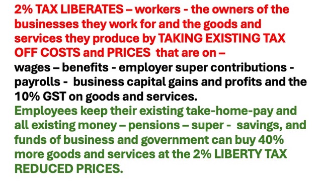 In my Letter No.94 – I provided a 2% LIBERTY TAX BUDGET for the Australian Federal Government to show you how 2% LIBERTY TAX –